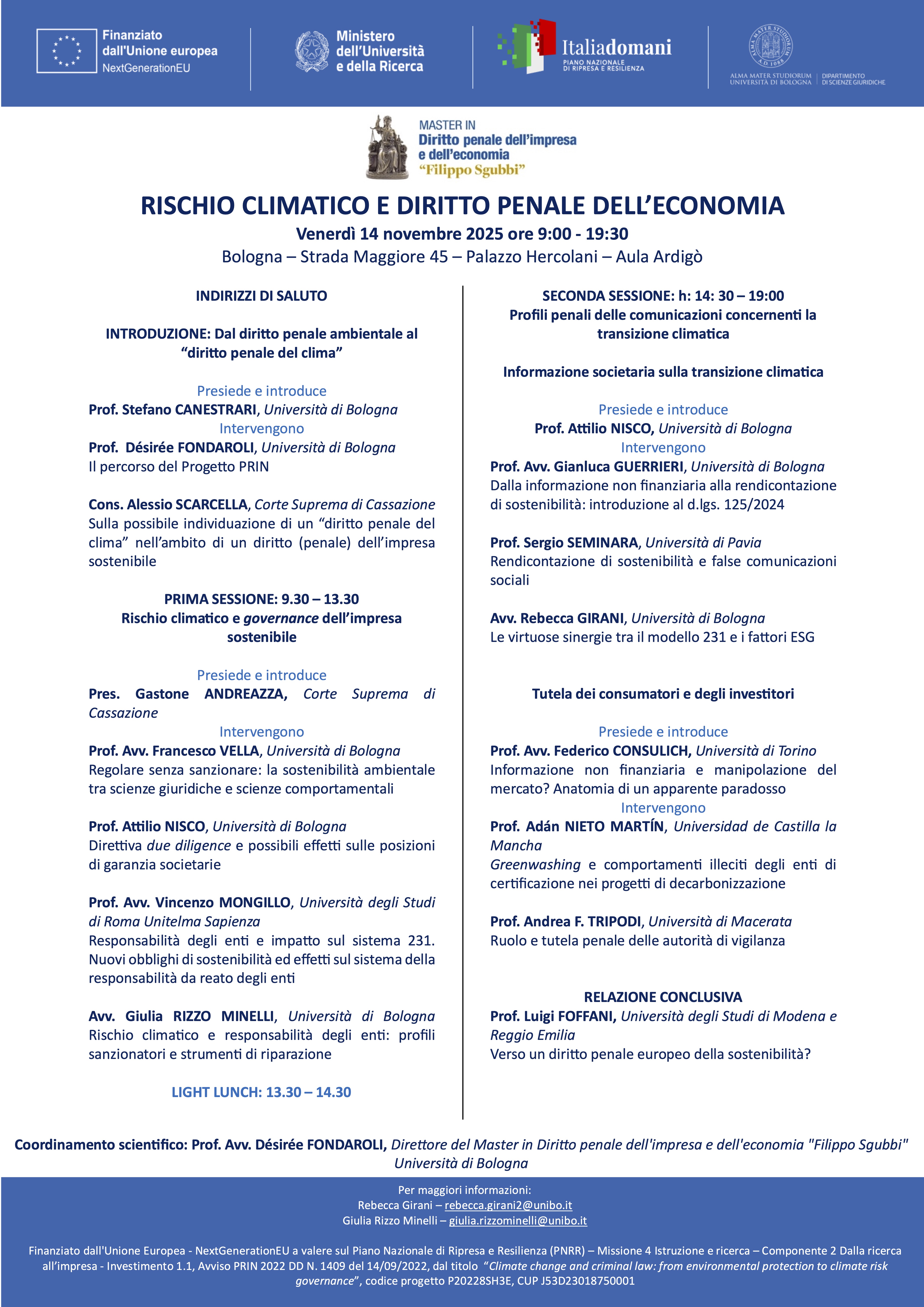 Coordinamento scientifico: Prof. Avv. Désirée FONDAROLI, Direttore del Master in Diritto penale dell'impresa e dell'economia "Filippo Sgubbi" Università di Bologna